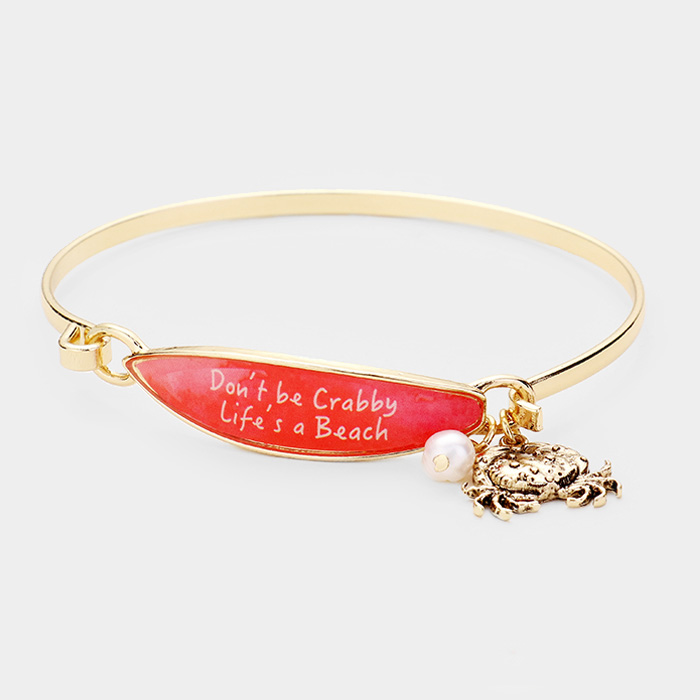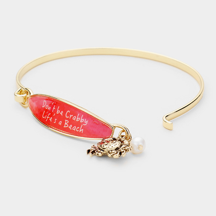 Don't be Crabby Life's a Beach Crab Charm Surfboard Hook Bracelet