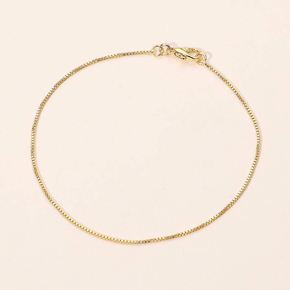 Details • Size : 0.1" H (1mm), 7.5" L • Lobster Clasp Closure • Elegant box chain bracelet featuring slim, polished links for a smooth and refined look. Its minimalist design makes it ideal for layering or everyday wear, adding a subtle touch of sophistication and timeless style to any jewelry collection. • Lead and Nickel Compliant • Made In Brazil