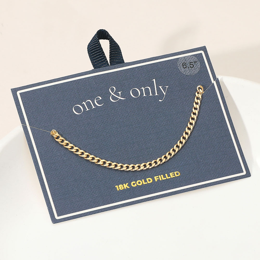 Details • Size : 0.1" H (3mm), 6.5" L • Lobster Clasp • Timeless Cuban chain bracelet featuring smooth flat links with a sleek polished shine. Its classic design offers effortless sophistication, perfect for daily wear or layering with other pieces. A versatile accessory that adds a refined touch to any modern or classic look. • Lead and Nickel Compliant • Gold Filled • Made In Brazil