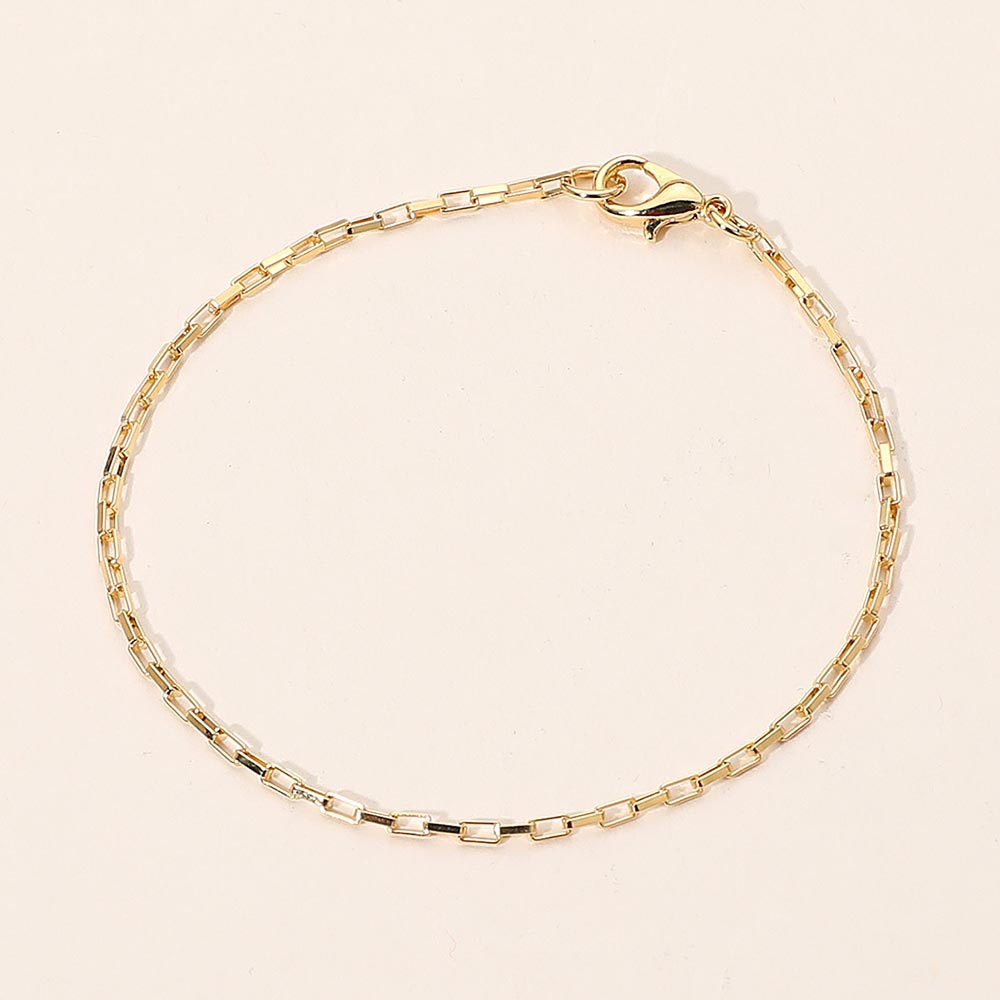 Details • Size : 0.1" H (2mm), 6.5" L • Lobster Clasp Closure • Chic box chain bracelet crafted with polished geometric links for a refined, contemporary look. Perfect for stacking or wearing alone, this minimalist bracelet adds a touch of elegance and versatility to both everyday and dressy outfits. • Gold Filled • Lead and Nickel Compliant • Made In Brazil