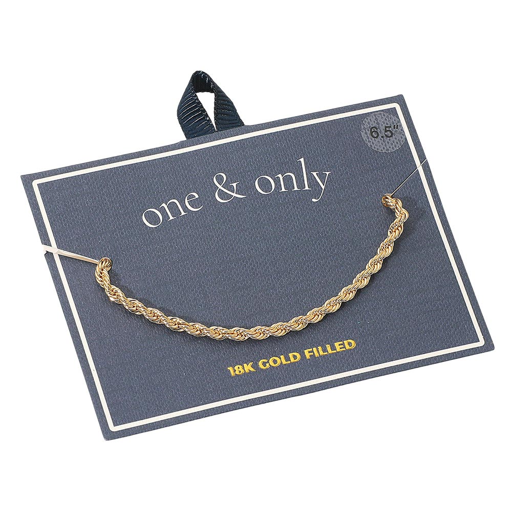 Details • Size : 0.1" H (3mm), 6.5" L • Lobster Clasp Closure • Refined rope chain bracelet showcasing a beautifully twisted pattern for a timeless look. Its intricate braided design adds sophistication and shine, perfect for layering or wearing solo. A chic, minimal accessory that elevates everyday or special occasion styles. • Lead and Nickel Compliant • Gold Filled • Made In Brazil