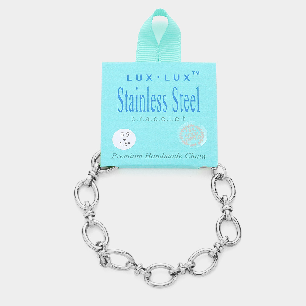 18K White Gold Dipped Stainless Steel Premium Handmade Chain Link Bracelet