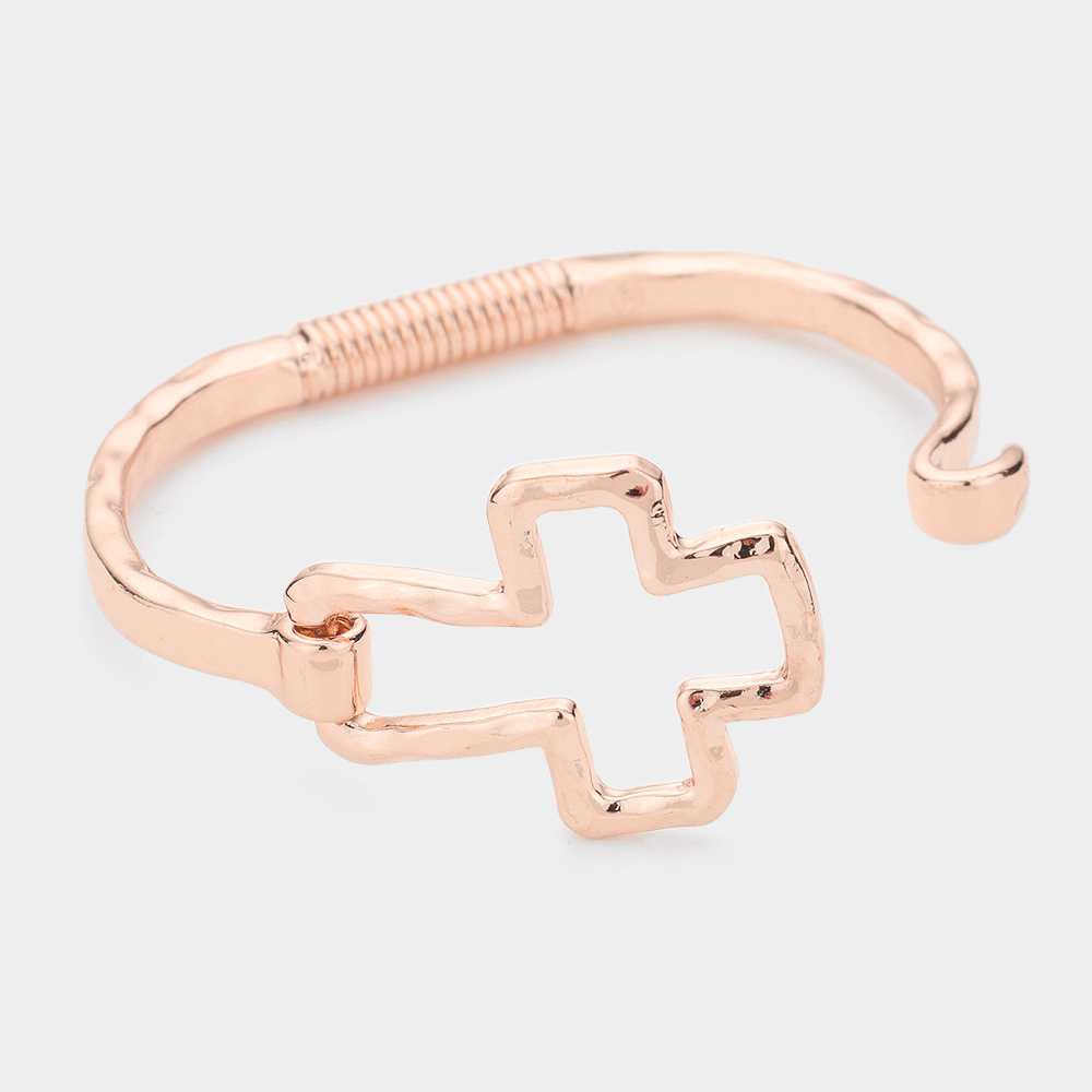 Hammered Open Metal Cross Hook Bracelet