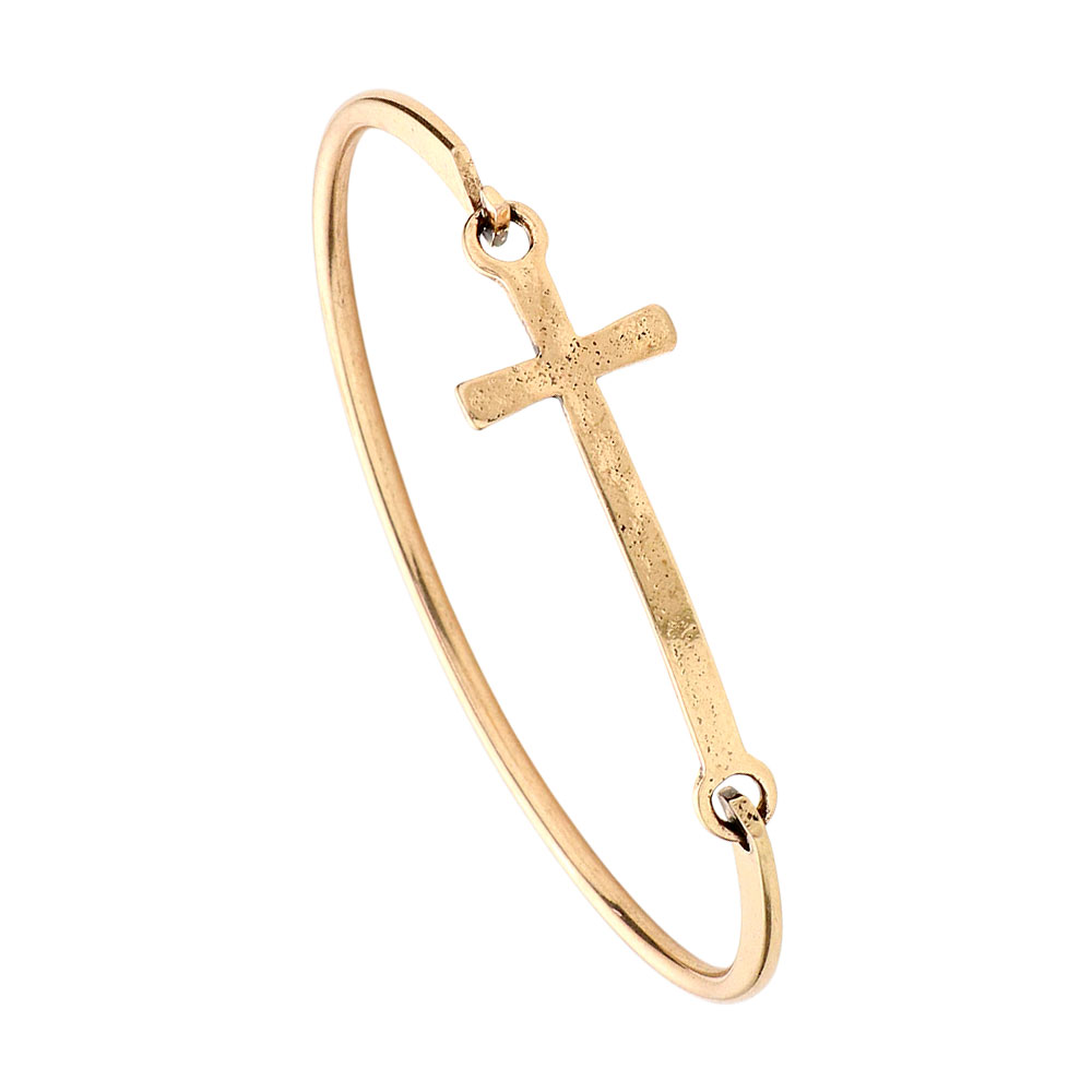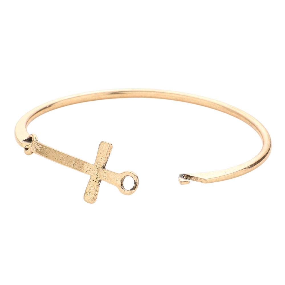 Details • Size : 0.6" H, 2.3" D • Hook Closure • This elegant bracelet features a slim horizontal cross charm on a delicate band, offering a modern take on a timeless symbol. Subtle and stylish, it’s perfect for everyday wear or layering with other pieces for a meaningful, contemporary look. • Lead and Nickel Compliant