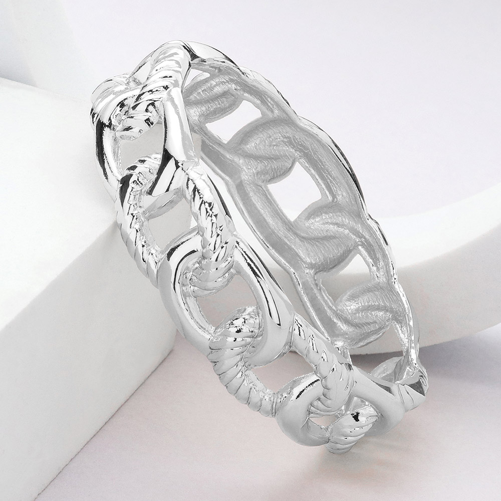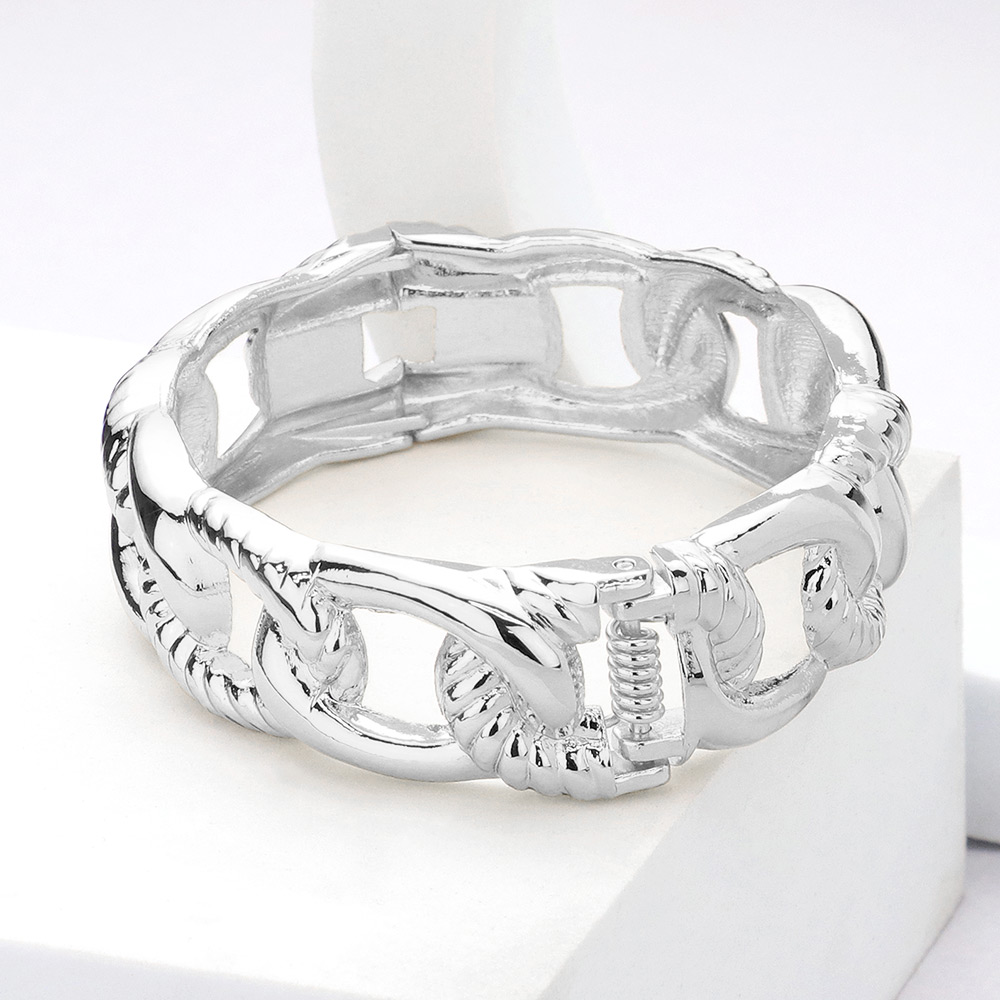 Metal Flat Cuban Chain Shape Hinged Bangle Bracelet
