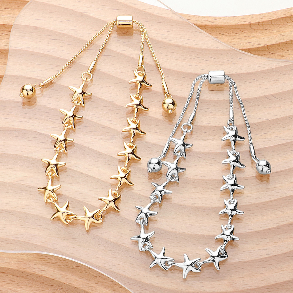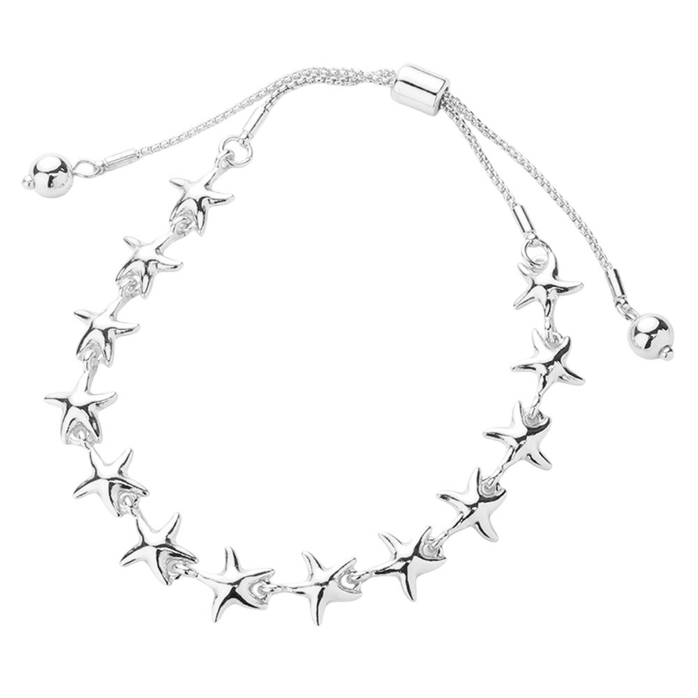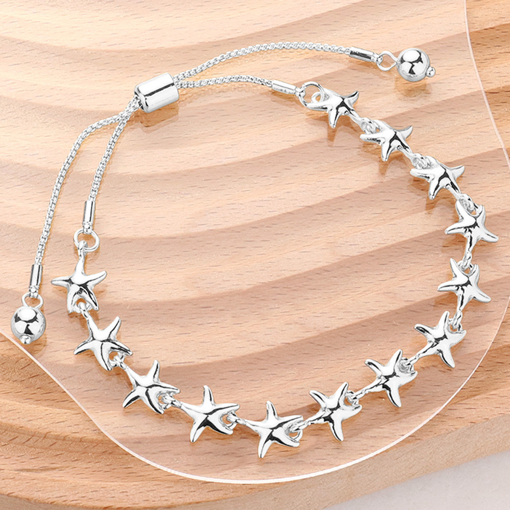 Metal Starfish Link Adjustable Pull Tie Bracelet