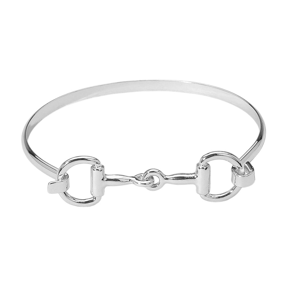 Details • Size : 0.6" H, 2.4" D • Hook Closure • This elegant bangle bracelet features a polished equestrian bit design at the center, blending classic refinement with modern minimalism. Its slim profile and sophisticated charm make it a versatile accessory for everyday wear or elevated styling. • Lead and Nickel Compliant