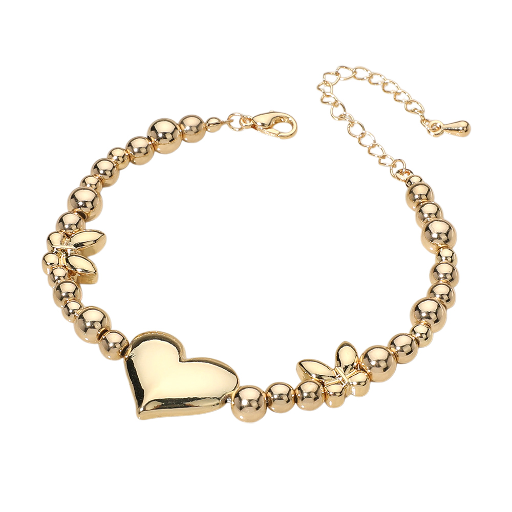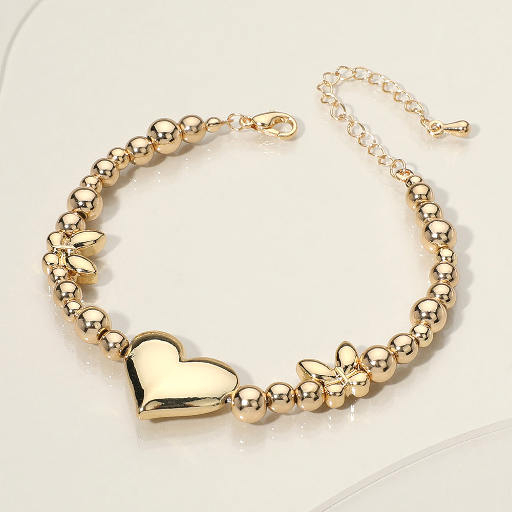 Stainless Steel Heart Butterfly Ball Beaded Bracelet