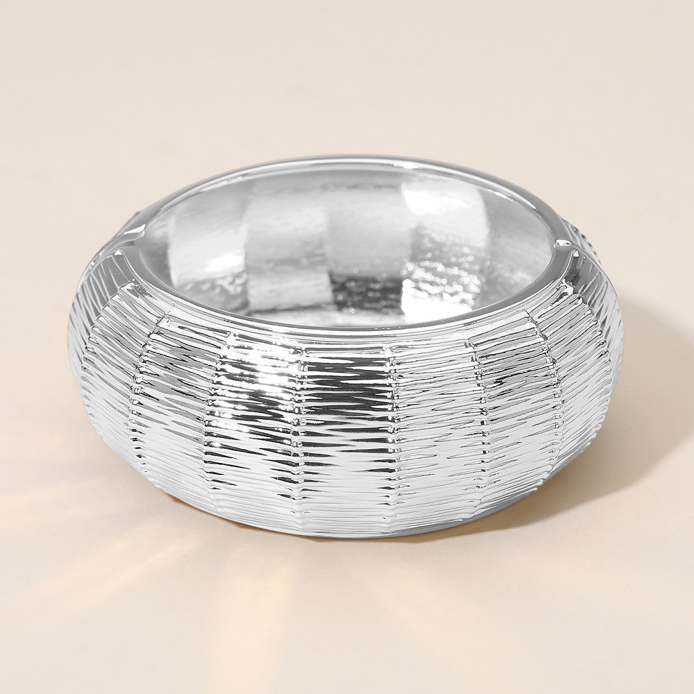 Details • Size : 1.25" H, 2.3" D • Hinged Closure • Make a bold impression with this textured wide bangle bracelet featuring a sleek, eye-catching design. Perfect for elevating casual or dressy outfits, this statement piece adds a touch of modern elegance and sophistication to your accessory collection.