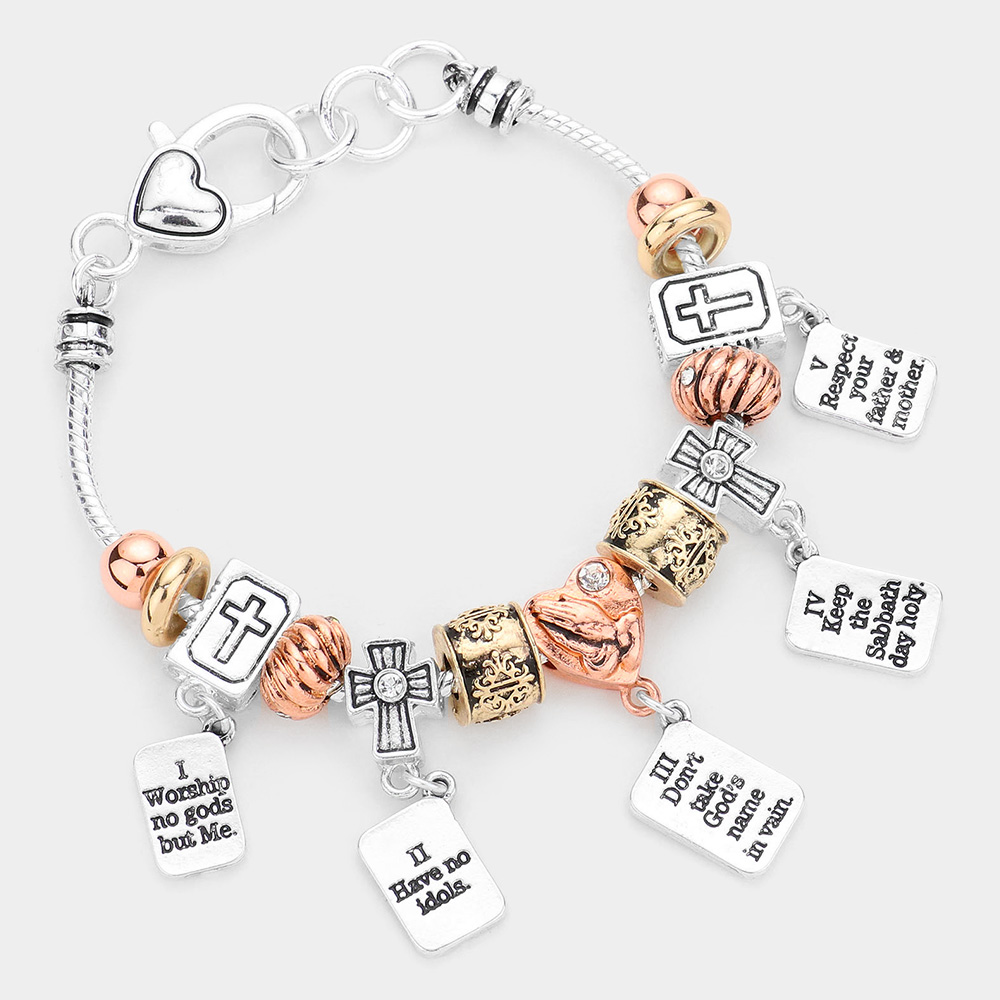 10 Commandments Heart Cross Bible Multi Bead Bracelet