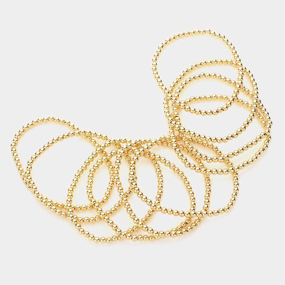 10PCS - Metal Ball Beaded Stretch Multi Layered Bracelets