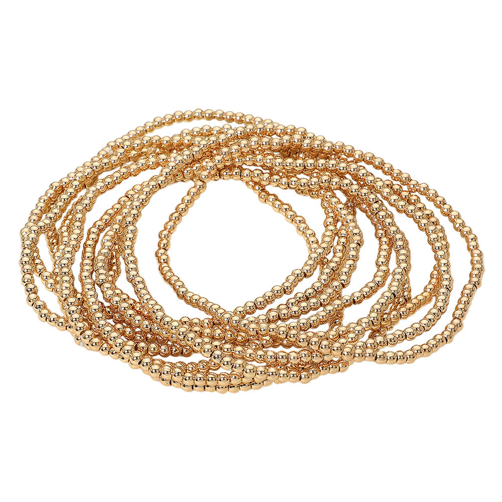 Details • Size : 1" H • Stretchable • Multi-strand beaded stretch bracelet set featuring sleek metallic mini beads. Lightweight and stackable, perfect for everyday wear or layering with other styles for a trendy look. • Lead and Nickel Compliant