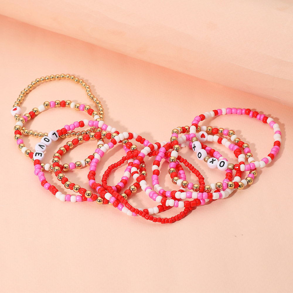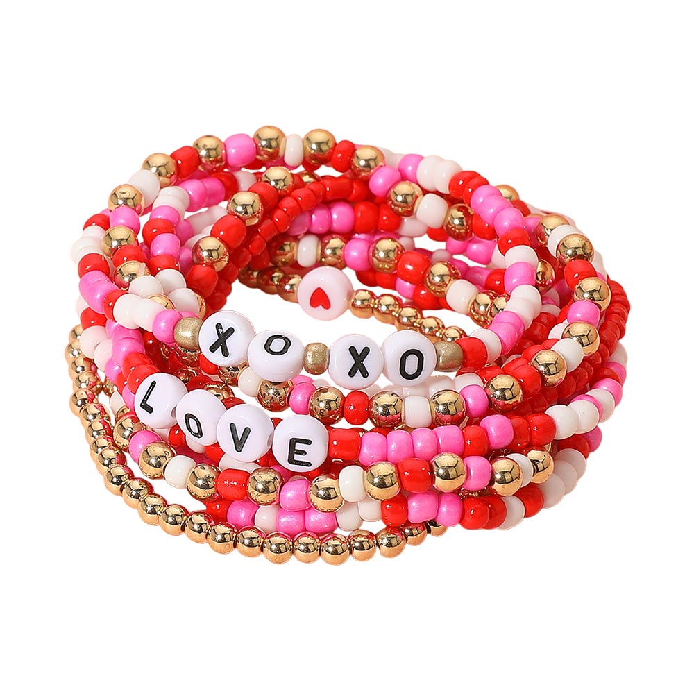 Details • Size : 1.75" H • Stretchable • Playful multi-strand beaded stretch bracelet set featuring mixed beads and charming LOVE and XOXO letter details. Lightweight, stackable, and perfect for adding a fun, expressive touch to everyday looks or gifting. • Lead and Nickel Compliant