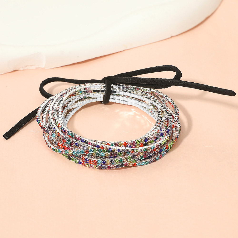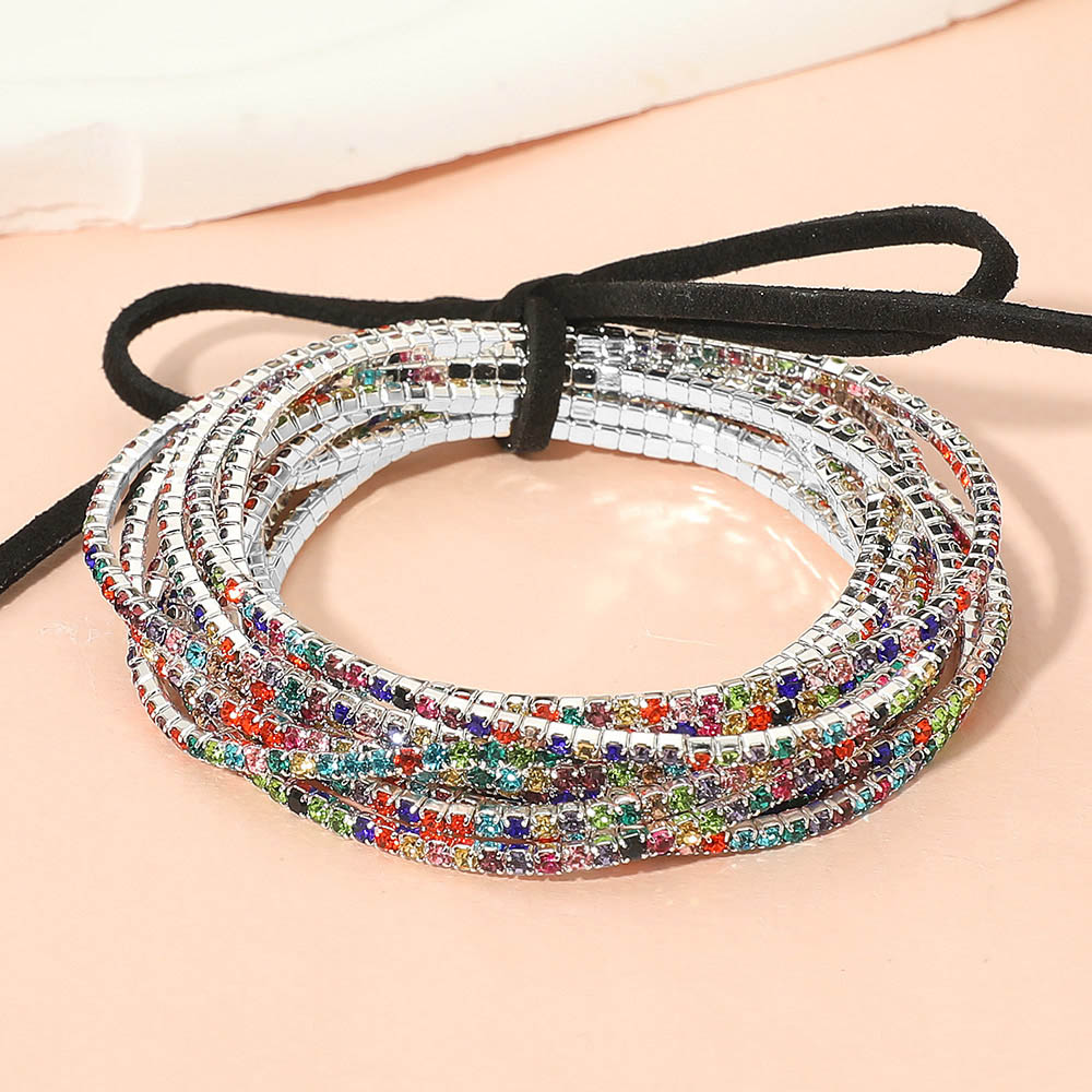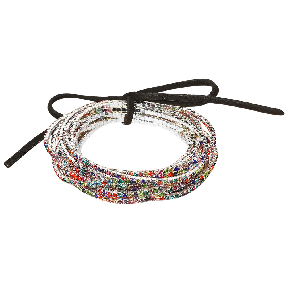 • Colorful wrap bracelet featuring multiple strands with shimmering bead accents and an adjustable tie closure. A playful accessory perfect for casual and festive looks.