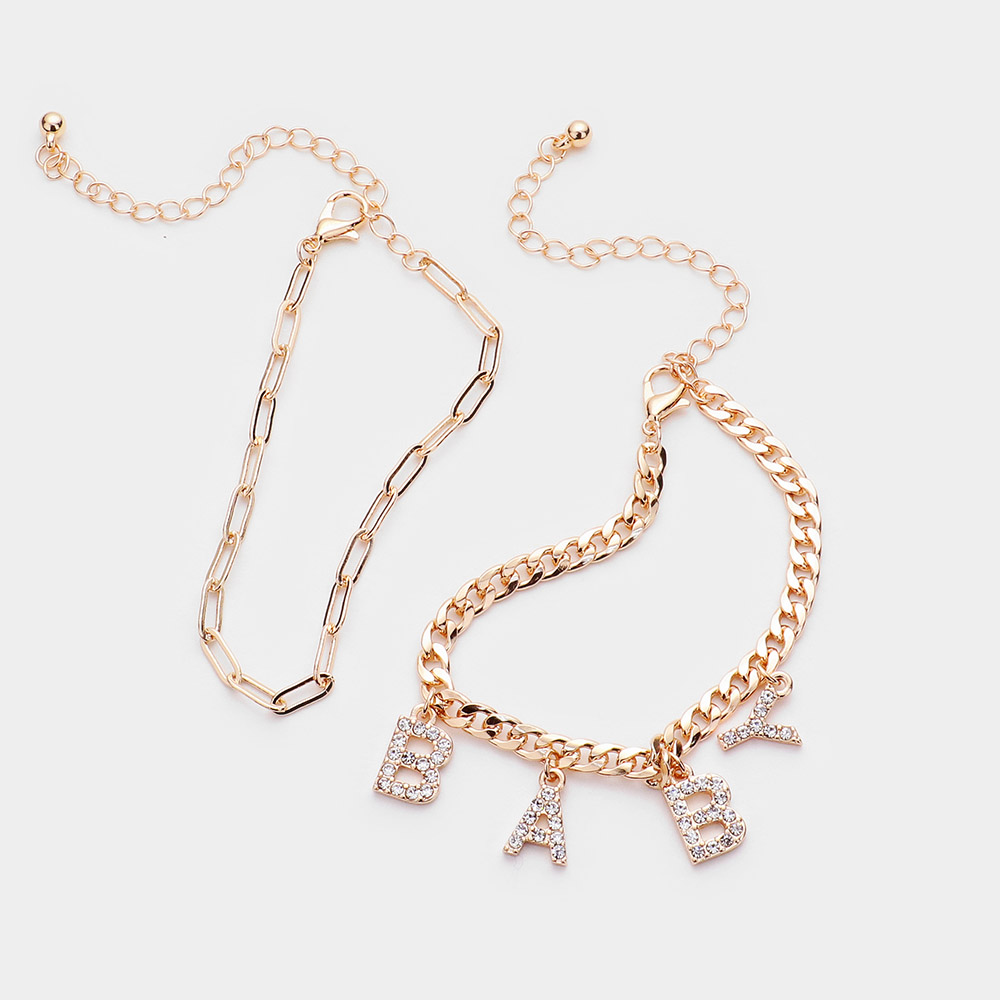 2PCS - BABY Rhinestone Embellished Metal Chain Bracelets
