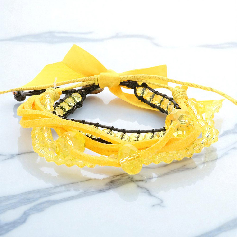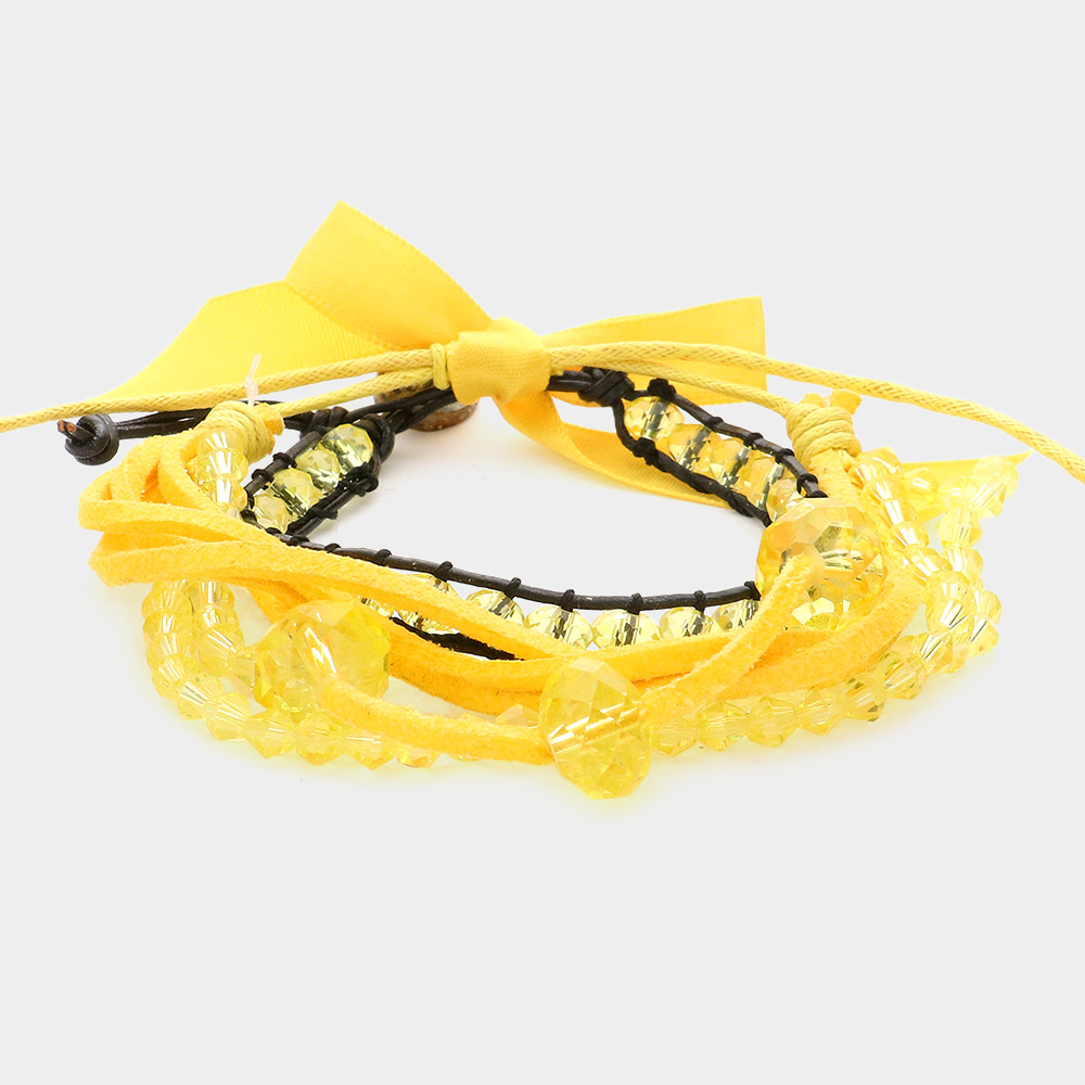 2PCS - Bead Faux Suede Adjustable Cinch Pull Tie Bracelets