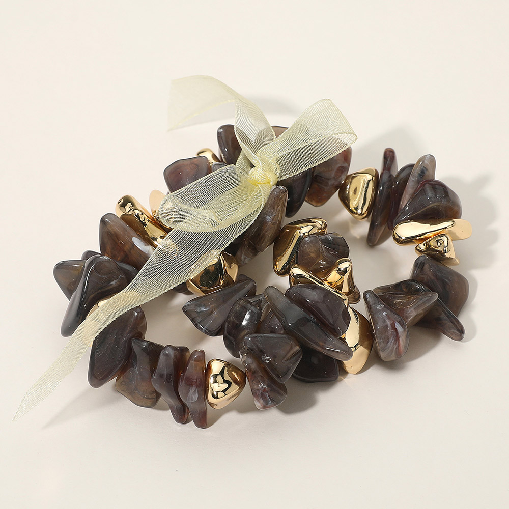 2PCS - Chunky Marbled Resin Metal Beaded Stretch Multi Layered Bracelets