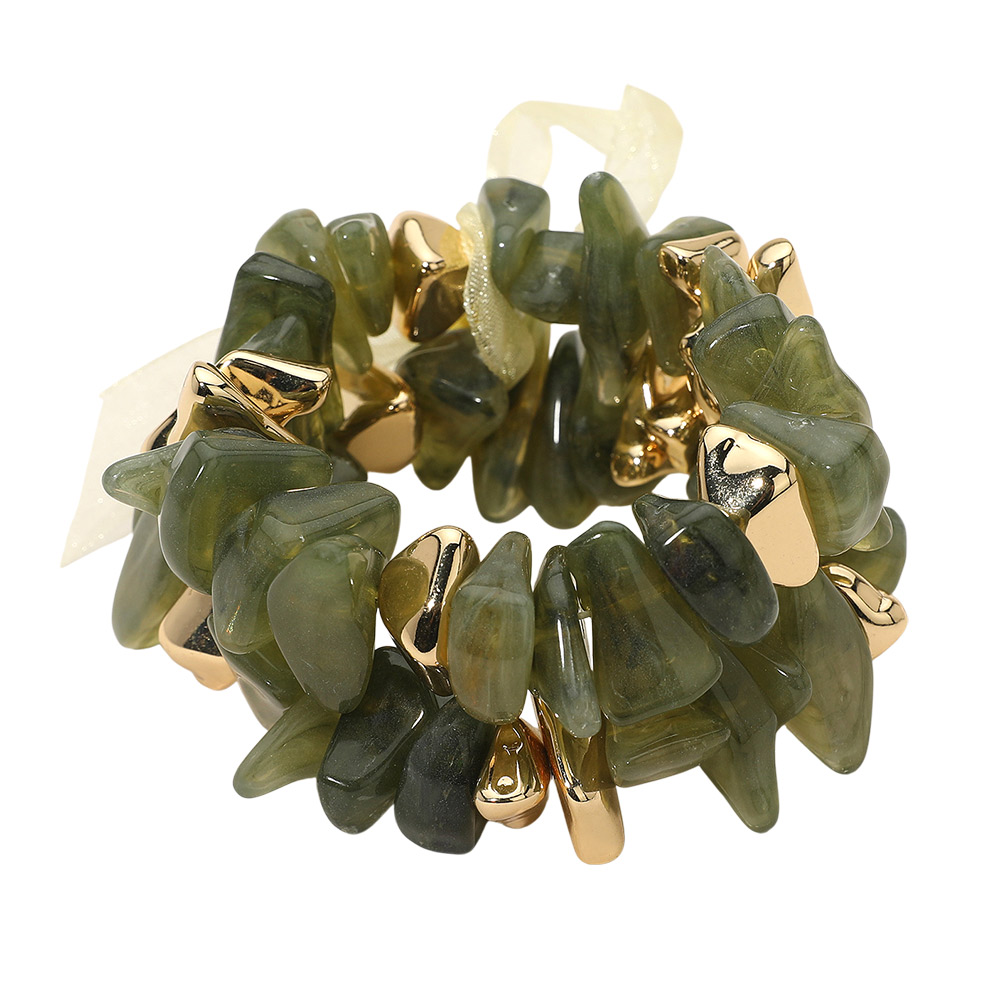 2PCS - Chunky Marbled Resin Metal Beaded Stretch Multi Layered Bracelets