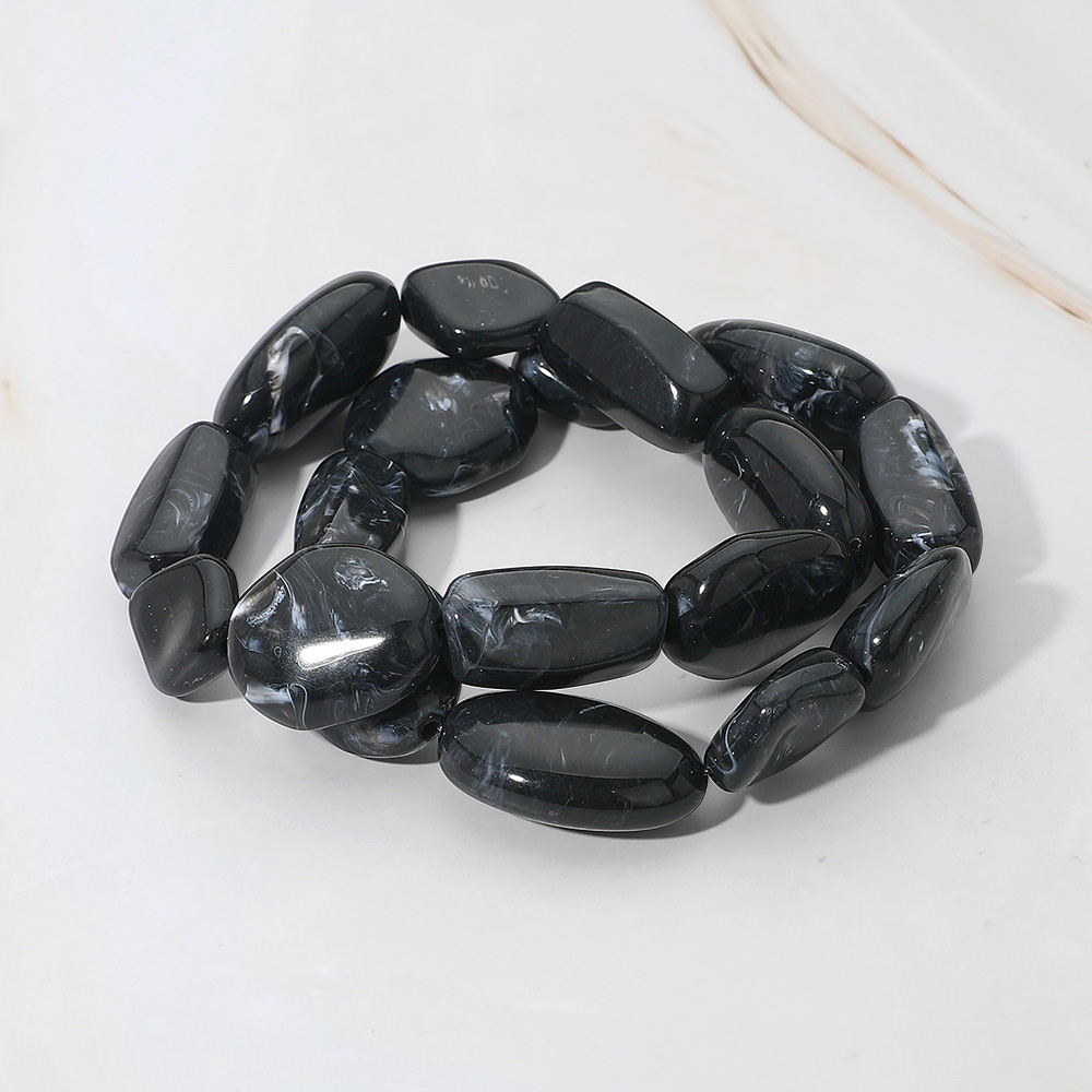 2PCS - Chunky Marbled Resin Multi Shape Pebble Beaded Stretch Multi Layered Bracelets