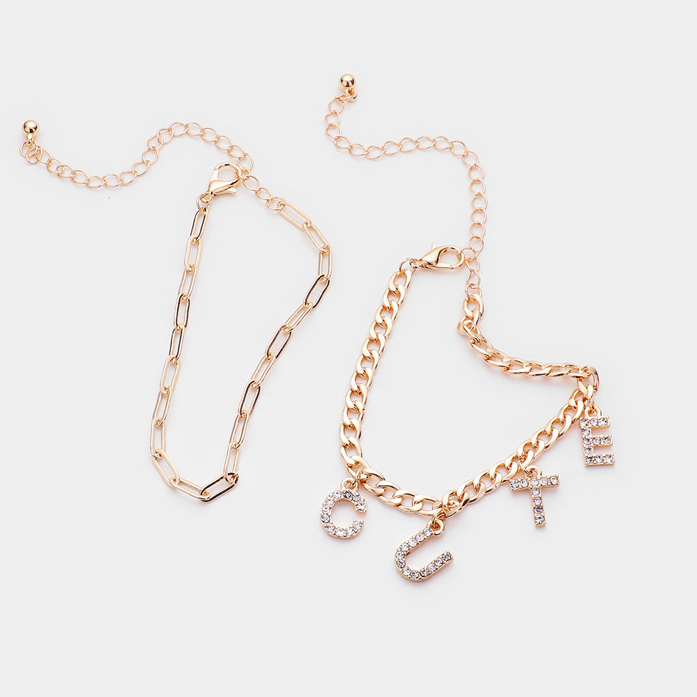 2PCS - CUTE Rhinestone Embellished Metal Chain Bracelets