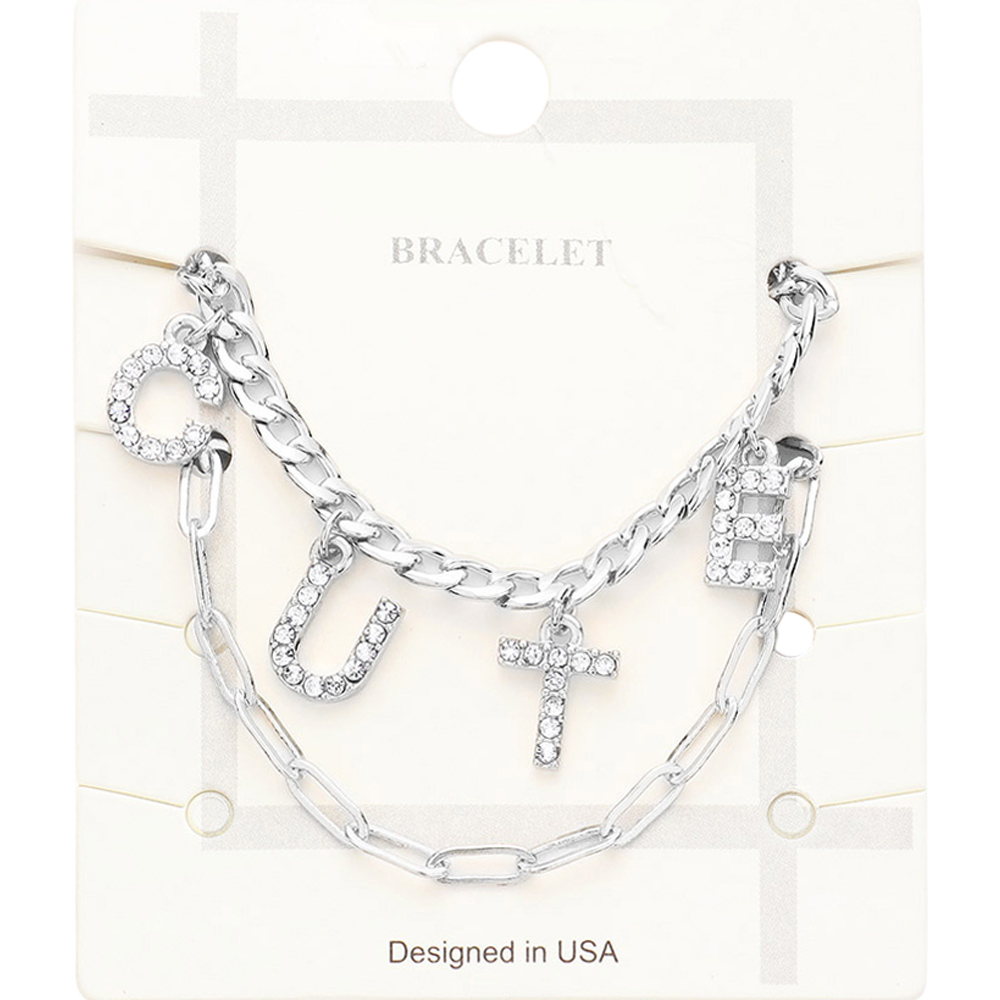 Inspirational Engraved Affection Heart Charm Embellished Bracelet