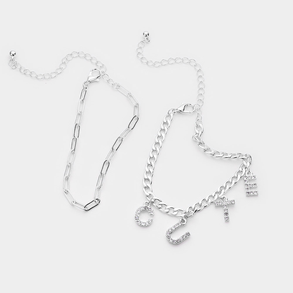 2PCS - CUTE Rhinestone Embellished Metal Chain Bracelets
