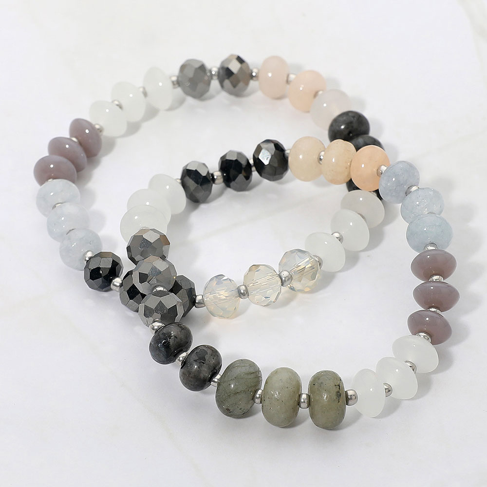 2PCS - Faceted Pebble Beaded Stretch Multi Layered Bracelets