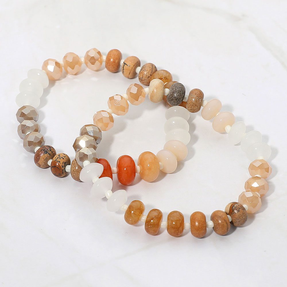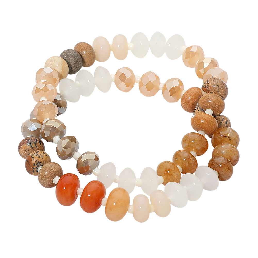 2PCS - Faceted Pebble Beaded Stretch Multi Layered Bracelets