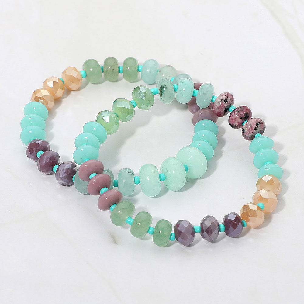 2PCS - Faceted Pebble Beaded Stretch Multi Layered Bracelets