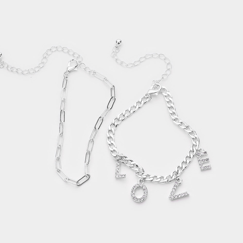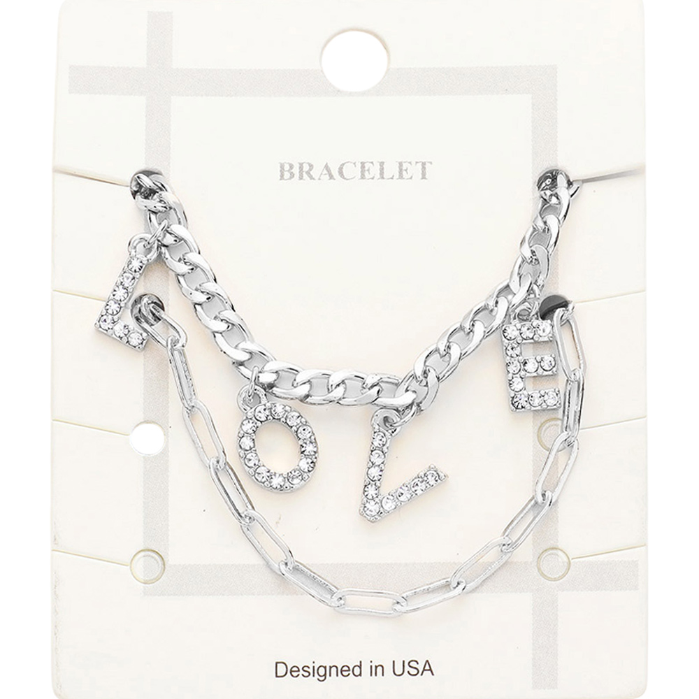 2PCS - LOVE Rhinestone Embellished Metal Chain Bracelets