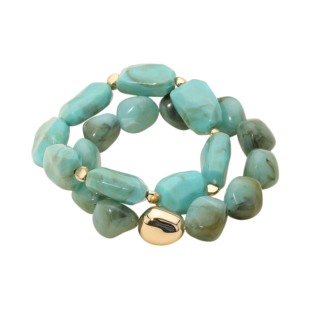 Details • Size : 1.25" H • Stretchable • Complete your look with this beaded stretch bracelet set featuring polished stone accents and metallic highlights. Designed for effortless style and comfort, these versatile bracelets add a pop of charm and sophistication, perfect for layering or wearing solo. • Lead and Nickel Compliant