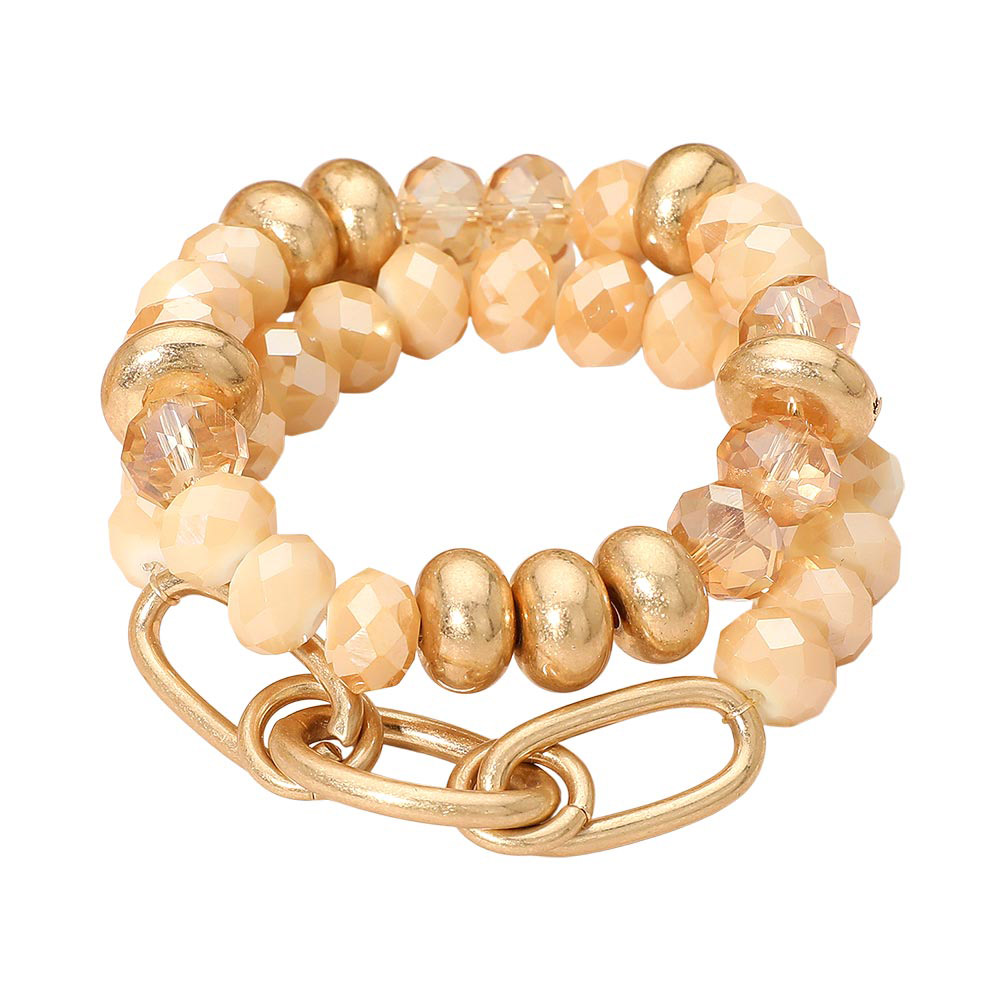2PCS - Oval Link Accent Faceted Beaded Stretch Multi Layered Bracelets