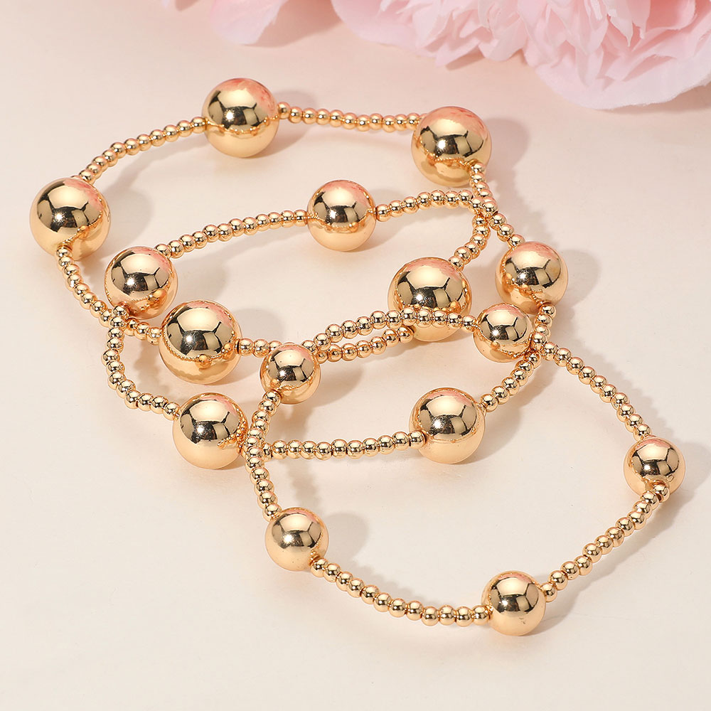3PCS - Bold Metal Ball Beaded Stretch Multi Layered Bracelets