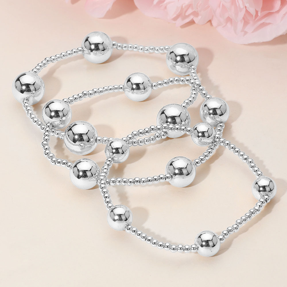 3PCS - Bold Metal Ball Beaded Stretch Multi Layered Bracelets