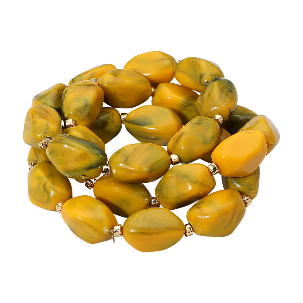3PCS - Chunky Marbled Pebble Beaded Stretch Multi Layered Bracelets