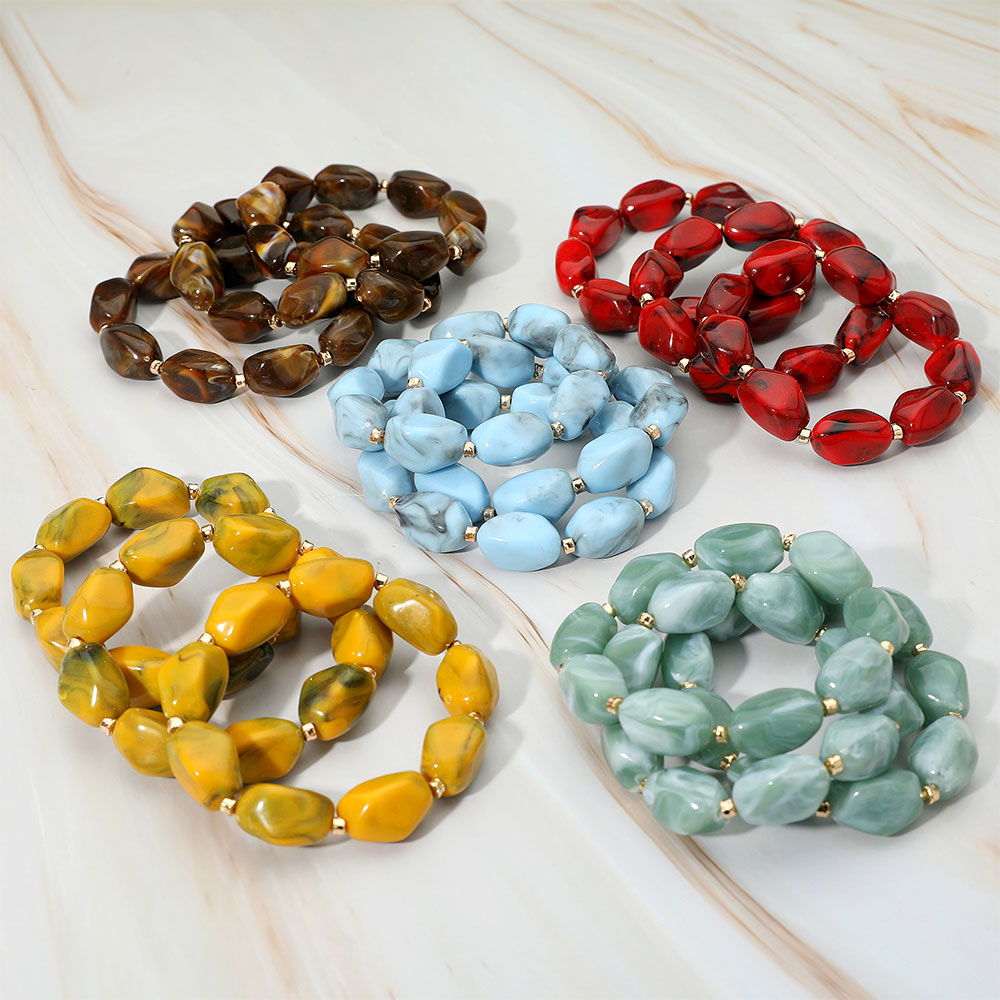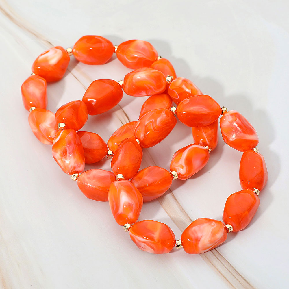 3PCS - Chunky Marbled Pebble Beaded Stretch Multi Layered Bracelets