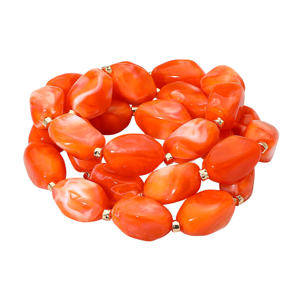Details • Size : 1.5" H • Stretchable • Complete your look with this chunky beaded stretch bracelet set. Designed with smooth, polished beads and subtle metallic accents, it offers a bold yet versatile statement. Perfect for layering or wearing solo, this set adds effortless elegance to any modern outfit.