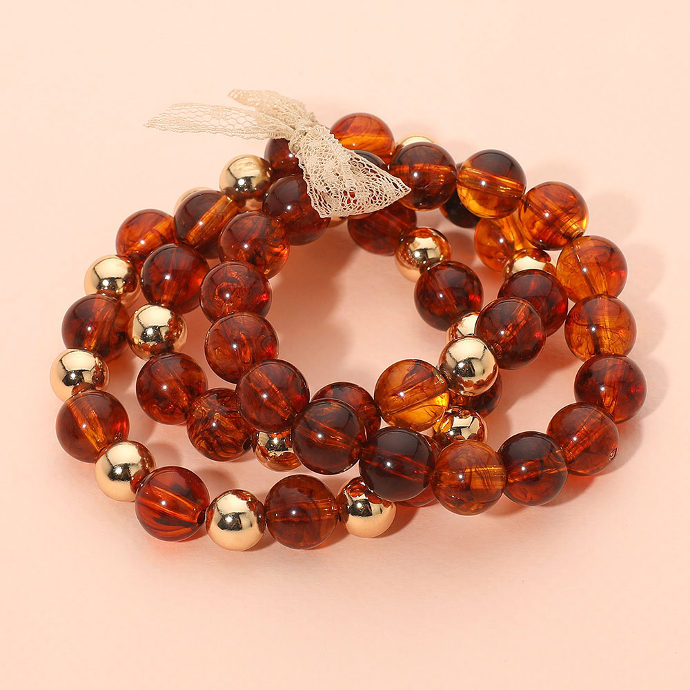 3PCS- Chunky Metal Resin Ball Beaded Stretch Multi Layered Bracelets