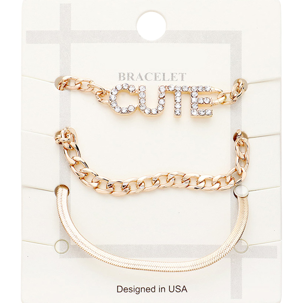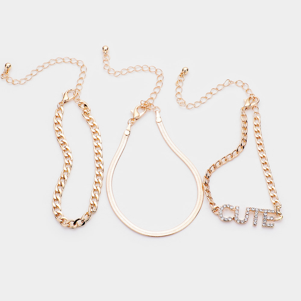 3PCS - CUTE Rhinestone Embellished Metal Chain Bracelets