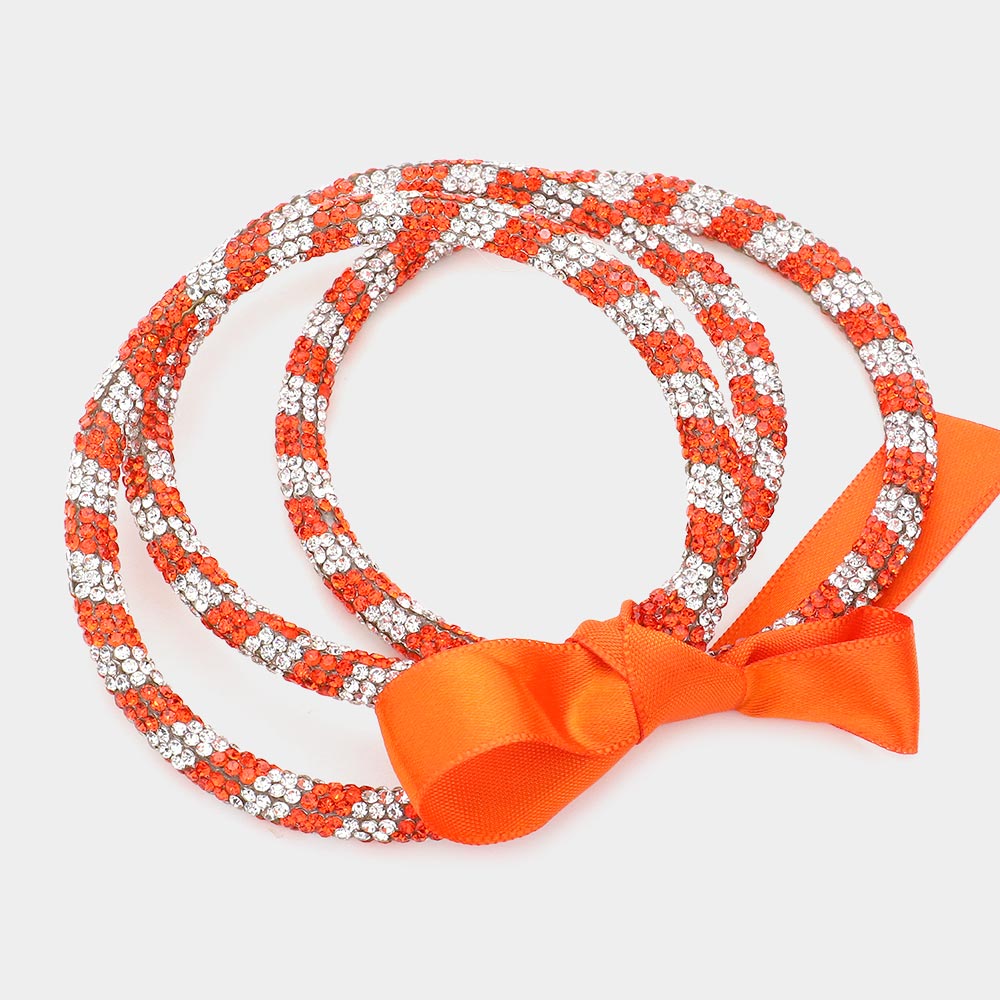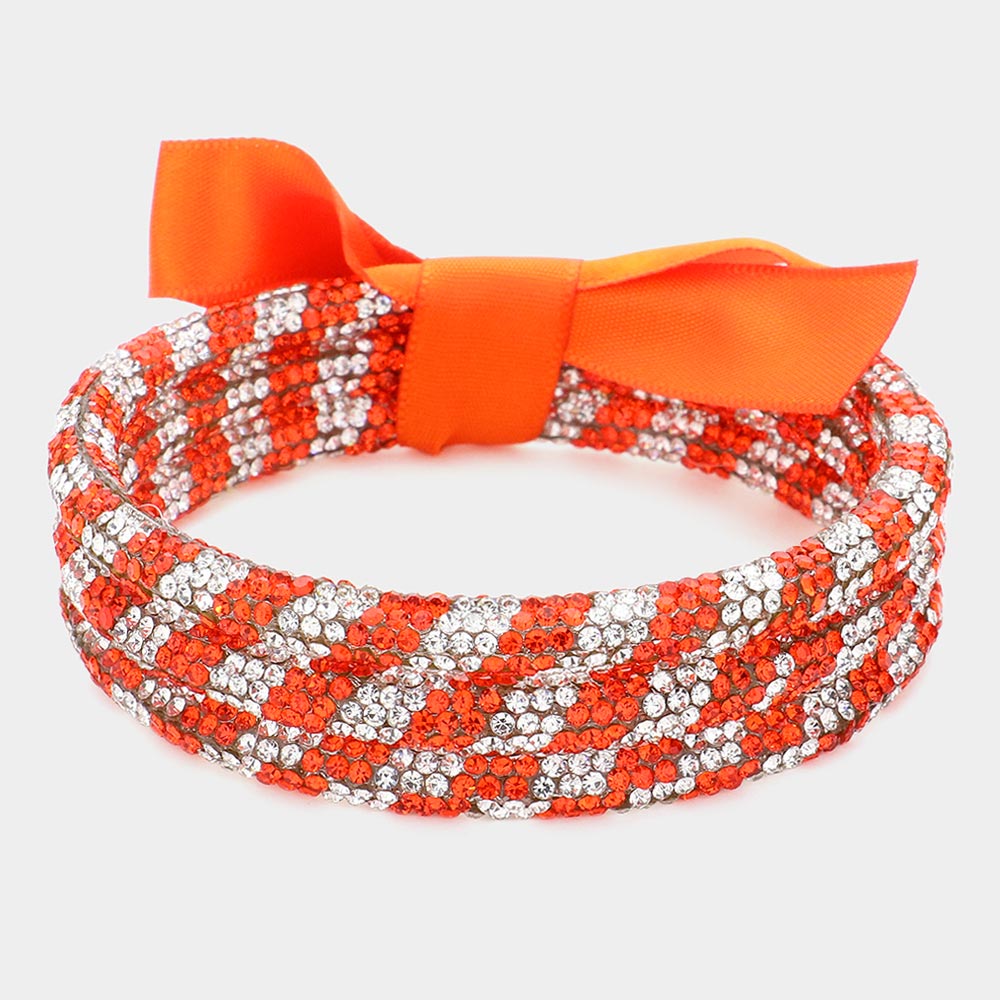 Details • Size : 0.75" H, 2.75" D • Shine from day to night with this sparkling rhinestone wrap bracelet. Featuring multiple rows of shimmering crystals finished with a chic ribbon tie, this bracelet adds effortless glam to any outfit. Its flexible wrap design ensures a comfortable fit while giving the look of stacked layers. Perfect for parties, weddings, or elevating everyday style, this bracelet is a must-have statement accessory. • Lead and Nickel Compliant