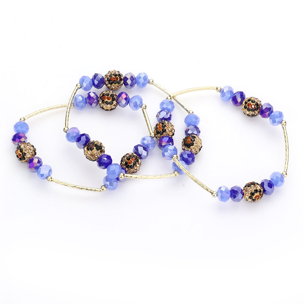 3PCS - Leopard Patterned Shamballa Ball Faceted Beaded Stretch Bracelets