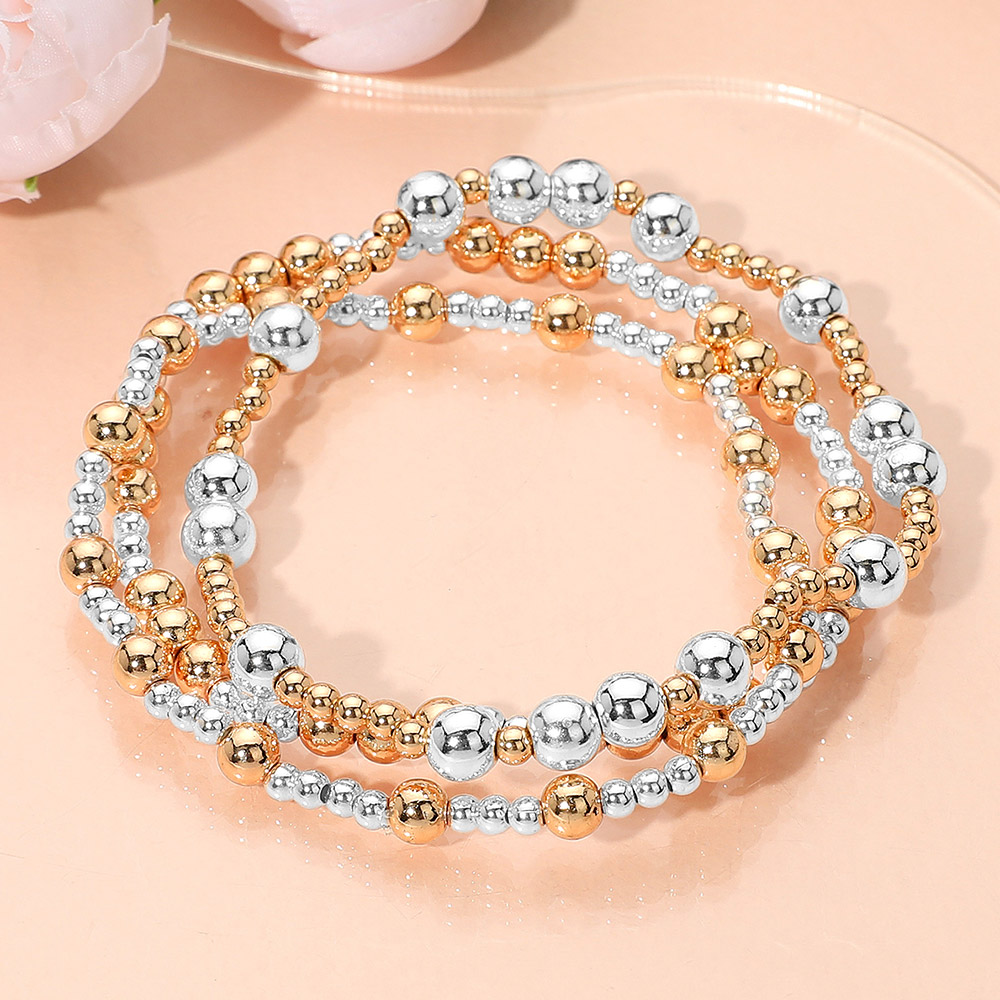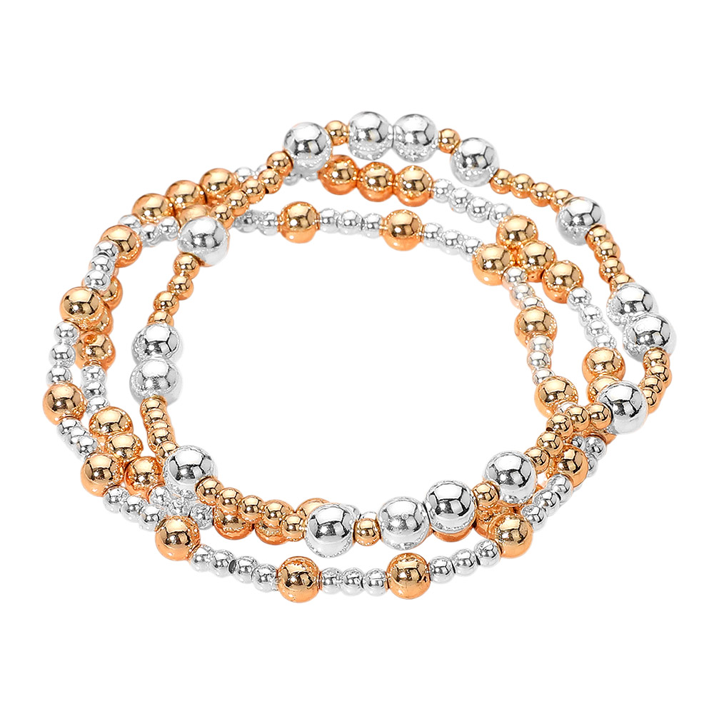 3PCS - Metal Ball Beaded Stretch Stackable Multi Layered Bracelets