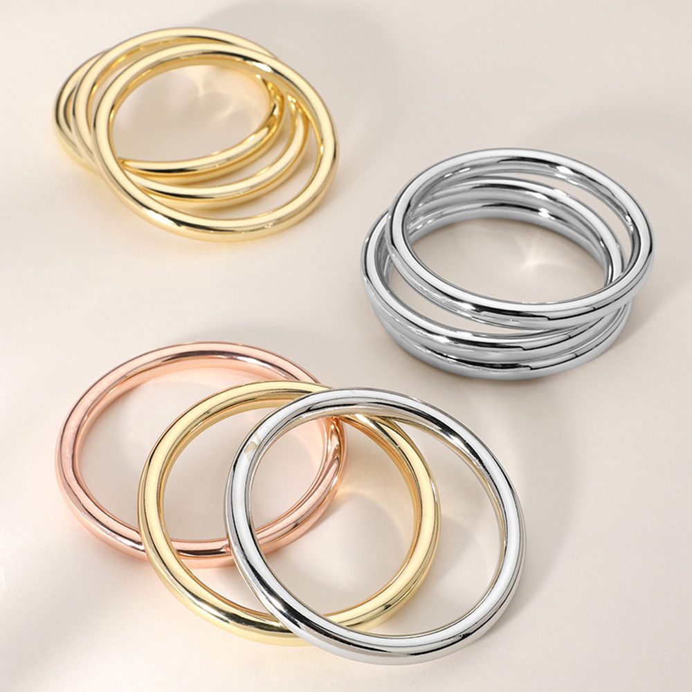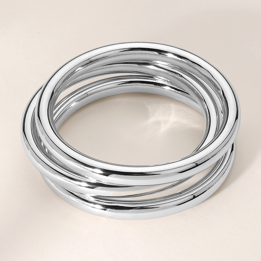 • Stylish bangle bracelet set featuring three smooth polished bands. Perfect for layering or wearing alone to add a chic metallic accent to any outfit, from casual to dressy.