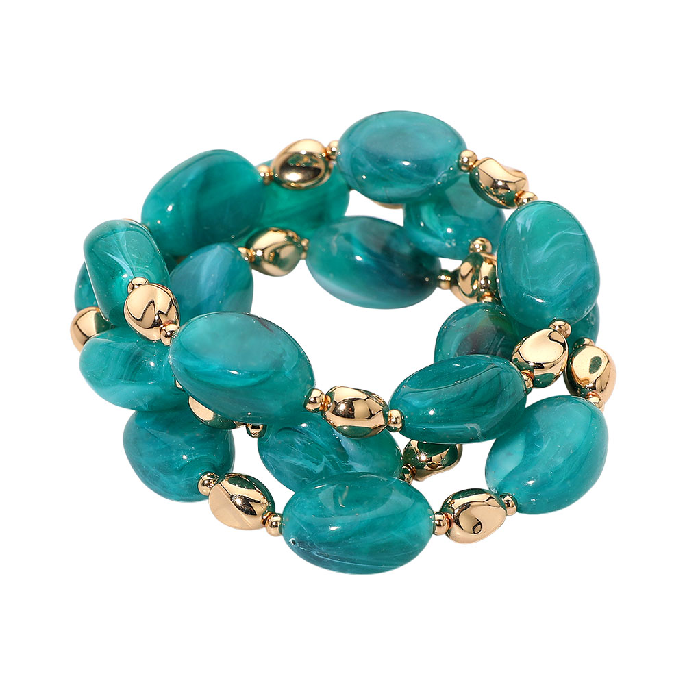 • This stretch bracelet showcases smooth oval beads arranged in a stacked, multi-row style for a bold yet refined look. Its sculpted shapes and polished accents create a striking accessory that adds effortless elegance to both everyday and elevated outfits.