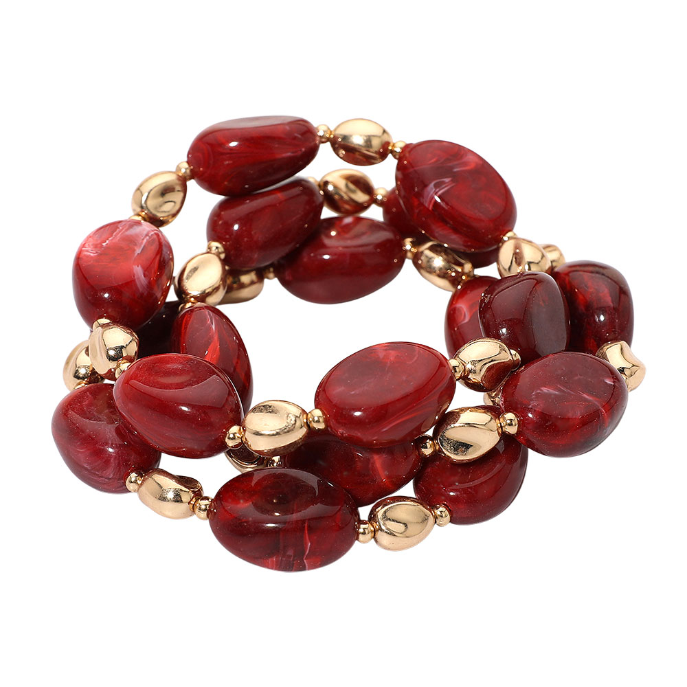 3PCS - Oval Pebble Beaded Stretch Multi Layered Bracelet