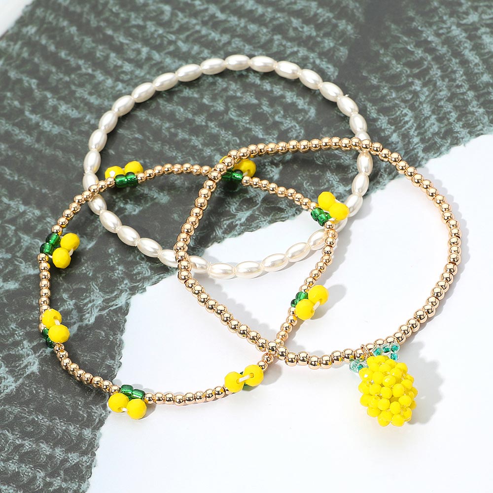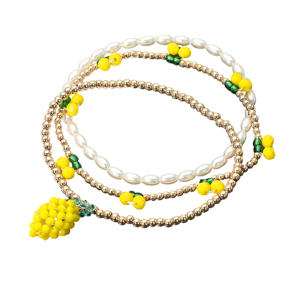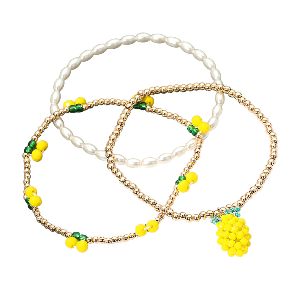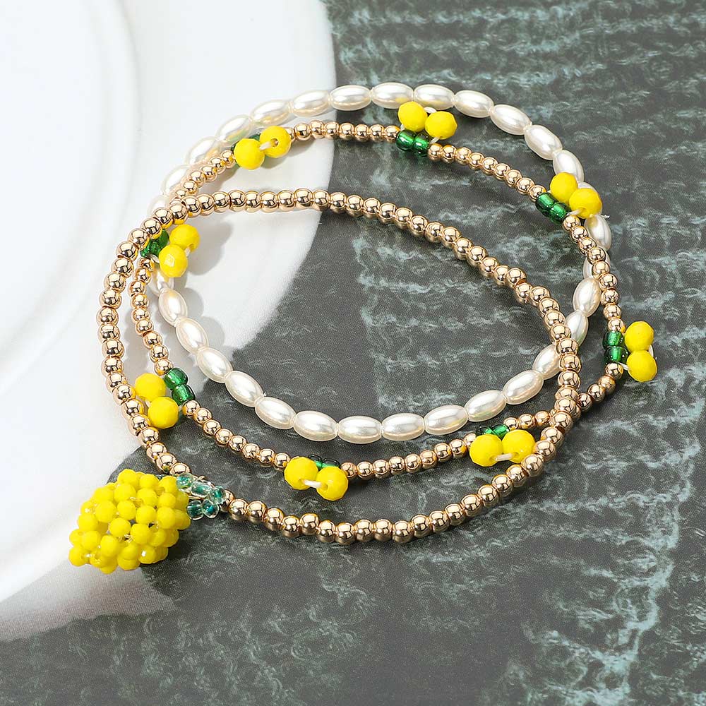 3PCS - Pearl Lemon Seed Beaded Stretch Multi Layered Bracelets