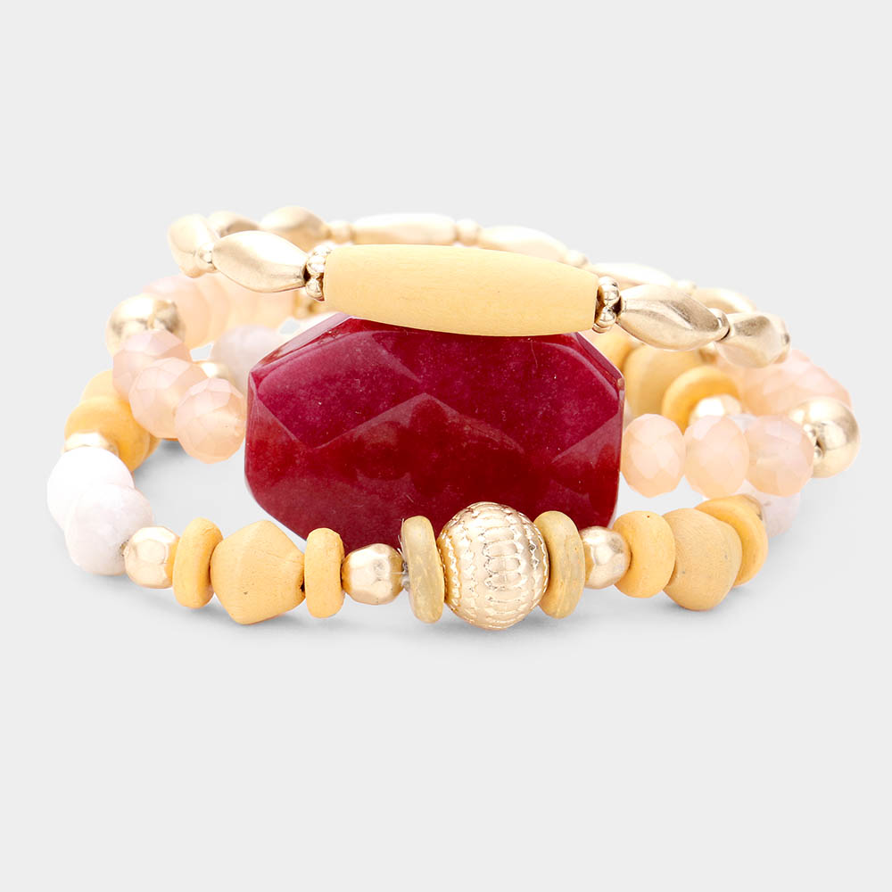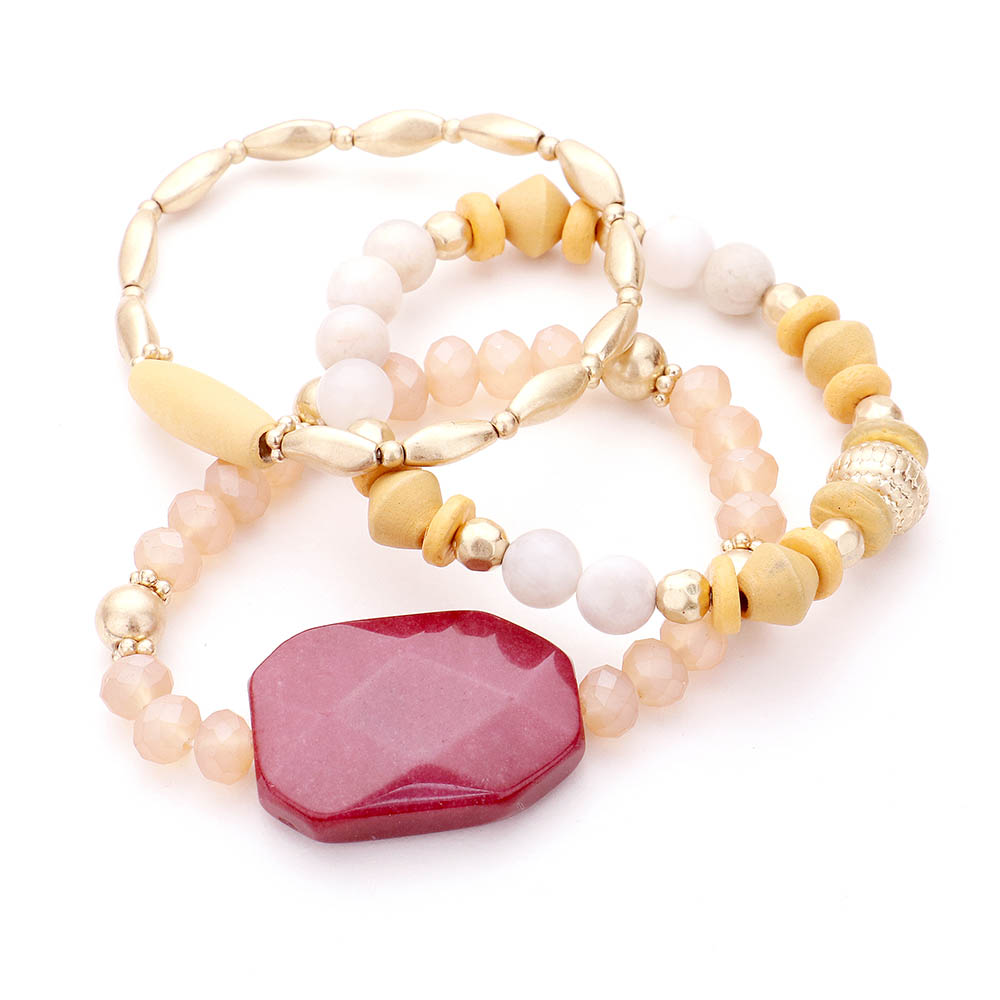 3PCS - Semi Precious Detail Stretch Bracelets