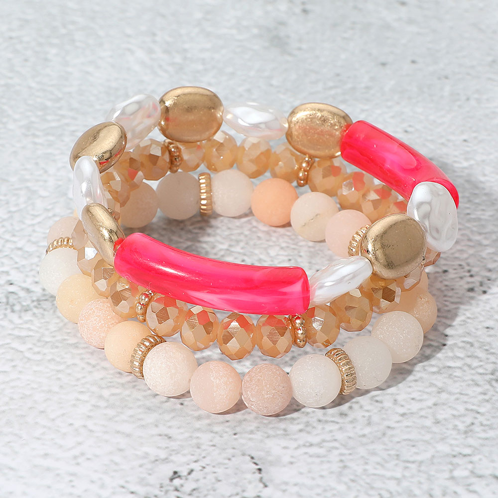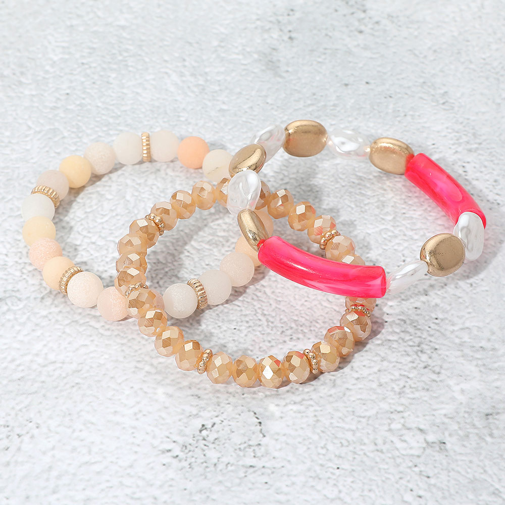 • Stylish 3-piece bracelet set featuring a unique combination of round, faceted, and bar-shaped beads. Stretch-fit for all-day comfort, perfect for layering or wearing solo.
