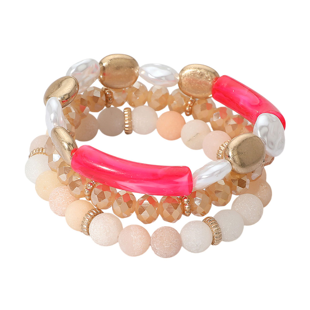 3PCS - Semi Precious Stone Pearl Resin Beaded Stretch Bracelets