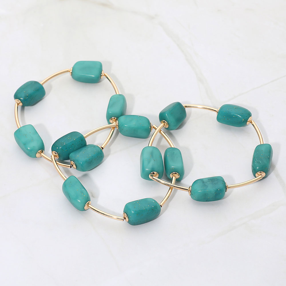 3PCS - Speckled Resin Pebble Metal Bar Beaded Stretch Multi Layered Bracelets